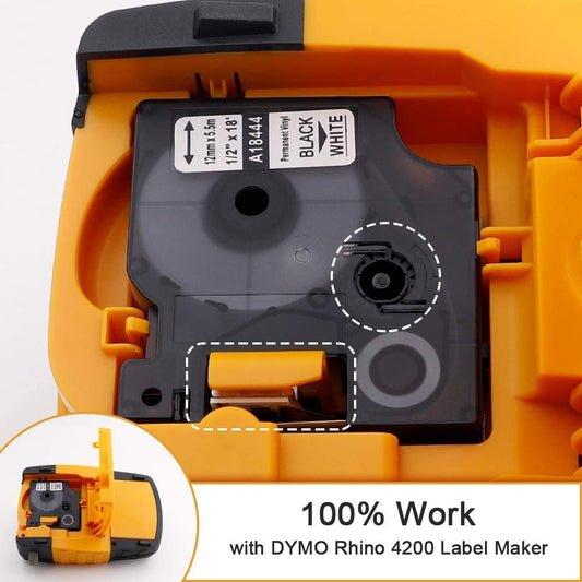 10x MarkField Compatible Cinta de etiquetas Reemplazo para Dymo Rhino 18444 S0718600 Vinilo industrial Casete para Dymo Rhino 4200 5000 5200 6000 3000 1000, 12mm x 5.5m, Negro sobre blanco
