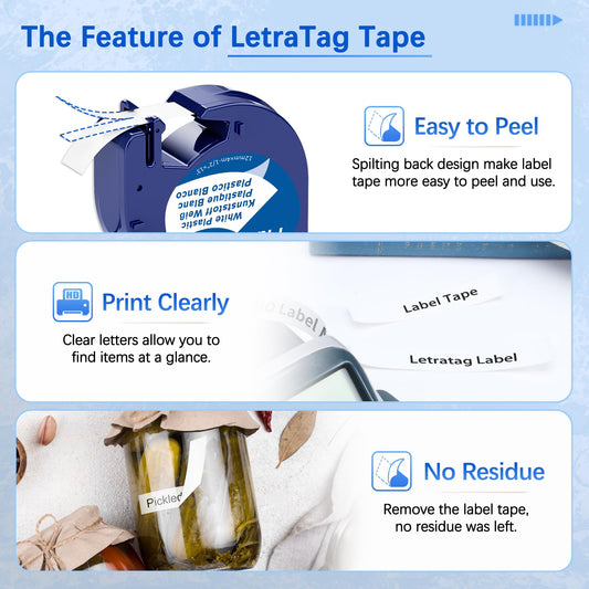 20x Cinta de Etiquetas Compatible para Dymo Letratag Cinta Etiquetas, Compatible para Dymo Letratag Recambios Plastic Cintas 12mm x 4m para Letratag LT-100h LT-100T LT-110T XR 200B