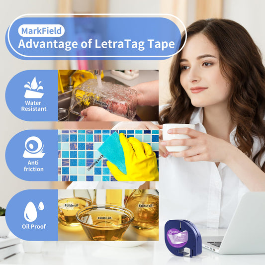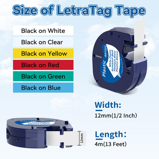 6x MarkField Kompatible für Dymo Letratag Etikettenband, Kompatible mit Dymo Letratag XR Etikettenband Letratag Kunststoff Bänder für Letra Tag LT-100H LT-100T XR XM 200B, 12mm x 4m
