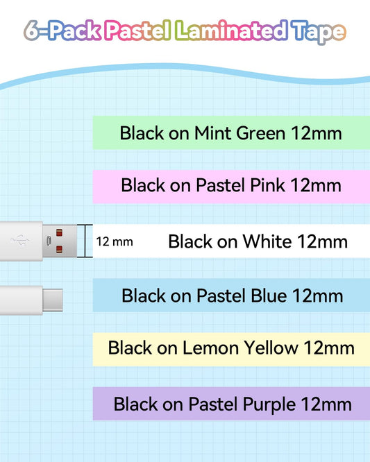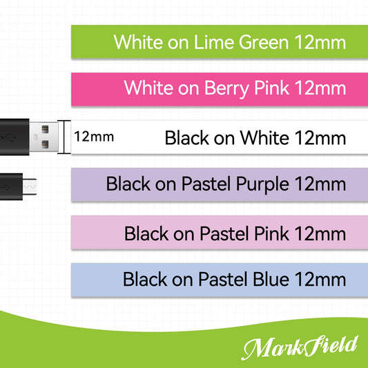 MarkField 6x TZ 12mm Pastel Ruban Compatible avec Brother P-Touch TZe-231 12mm 0,47 Couleur d'étiquettes laminé pour PT-H105 H101C H110 H100LB/R 1000 1010 1080 D200 D400 E100 P300BT Cube