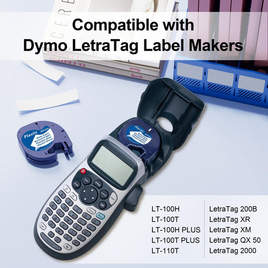 MarkField Cintas de Plástico Etiquetas Compatible para Dymo Letratag Plastic Cintas 12mm x 4m 91201 S0721610 Recambios para LT-100H LT-100T LT-110T QX50 XR XM 2000, Negro sobre Blanco