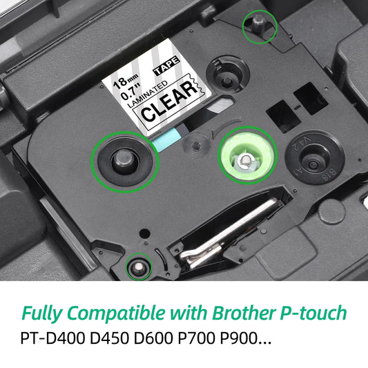 MarkField 6x Compatible Ruban Replacement pour Brother P-Touch TZ 18mm x 8m 0,7 Laminé d'étiquettes Cassette pour Ptouch PT-D400 D600 550 1300 P700 P900 2730PC E300 TZe-141 241 441 541 641 741