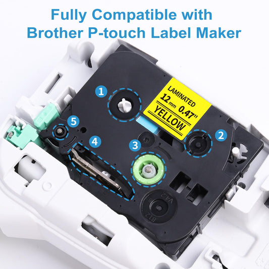 MarkField TZe-631 Cintas de Etiquetas Compatible con Brother P-touch Reemplazo para TZe-631 Negro sobre Amarillo 12mm, para PT-1000 1010 1080 1280 H100R/LB H105 H110 H200 D200 D400 E110 P300BT