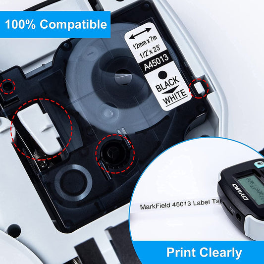 Reemplazo de cintas de etiquetas compatibles con MarkField para Dymo D1 45013 S0720530 Negro sobre blanco 12 mm para Dymo LabelManager 160280 260P 360D LabelWriter 450 DUO LabelPoint 150250