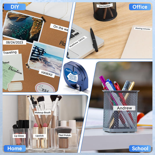 MarkField Ruban compatible pour Dymo LetraTag Ruban Plastique Noir sur Blanc, Recharge pour Letratag LT-100H LT-100T XR 200B (Plastic White 12mm x 4m S0721610 91201)